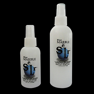 Blue marble spray es un fijador base agua muy resistente, ideal para aquellas personas con piel sensible o que tienen reacciones negativas a los productos base alcohol. Blue marble spray sella cualquier producto, desde maquillaje Beauty hasta maquillajes teatrales RMG más pesados. Este fijador es suave para el uso diario y fuerte como para efectos especiales de trabajos bajo el agua. Este fijador es recomendable para sellar el Skin Illustrator Glazing gel.  Agítese antes de usar.