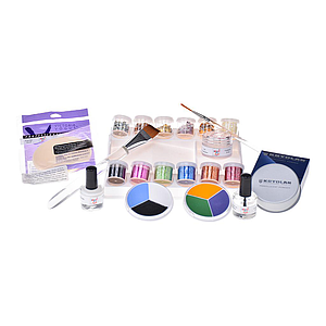 • Kit de Pedrería y Glitter. Incluye una paleta con 6 contenedores con pedrería de