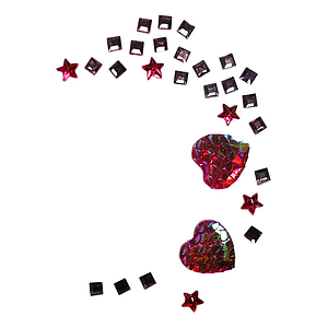 Pedrería especial para complementar trabajos de facepainting. Para colocar la pedrería, es necesario que primero limpie la superficie en donde va a aplicarla. Después, desprenda la pedrería del empaque y aplique una ligera presión. Para retirarla de la piel, simplemente tire de la pedrería suavemente. Si quedan residuos de pegamento, puede removerlos con crema.